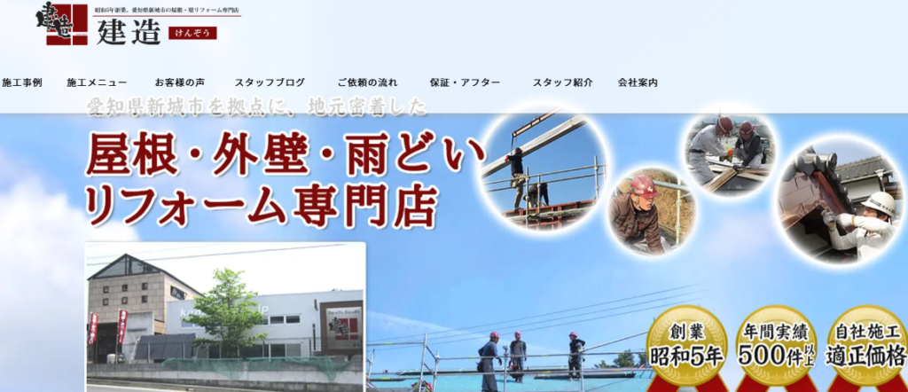 有限会社 建造は、1930年(昭和5年)創業の歴史ある屋根・外壁リフォーム専門店です。新城市を拠点に、屋根、外壁、雨どいのリフォームを手掛けており、年間500件以上の施工実績を持ちます。自社施工により中間マージンを削減し、コストパフォーマンスの高いサービスを提供しています。Houzz Japan+