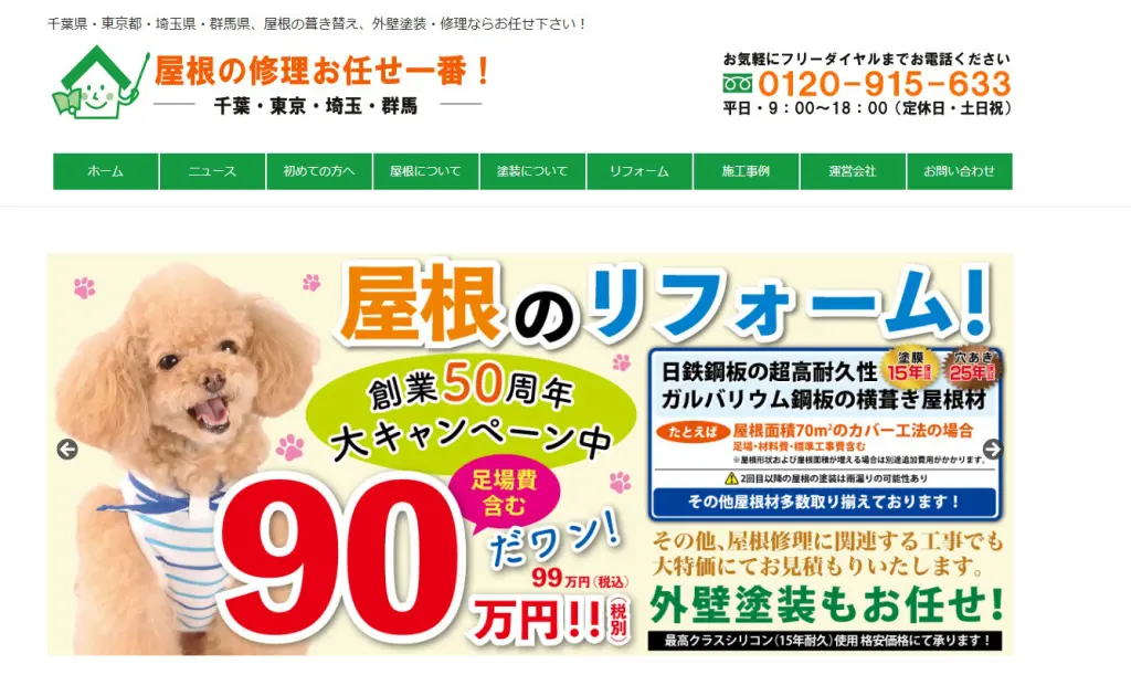 屋根の修理お任せ一番!は、幅広いリフォームサービスを提供しています。施工後も安心できる点検保証があり、施工事例も多数掲載されています。