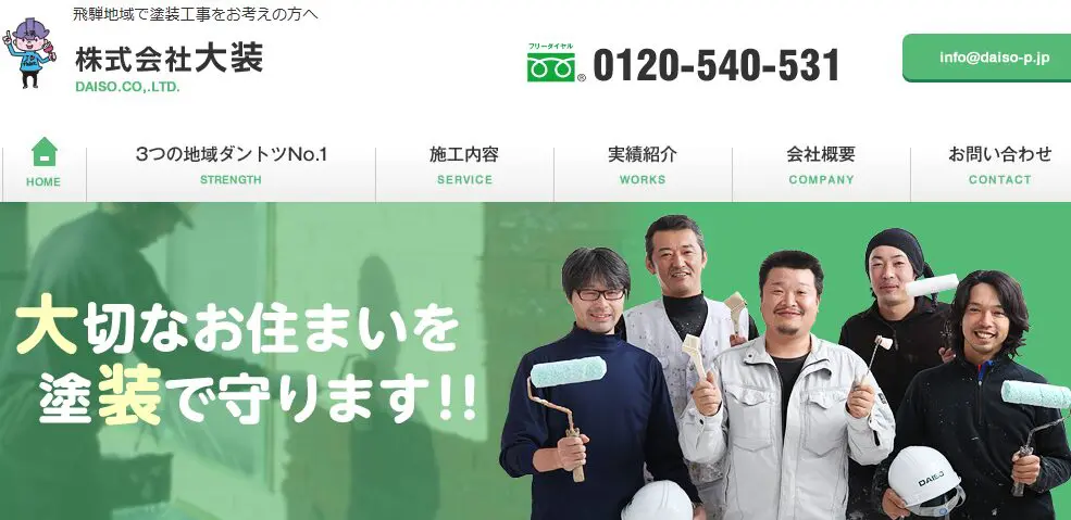 株式会社大装は、岐阜県飛騨地域を中心に屋根・外壁塗装、防水、屋根板金工事を専門とする地域密着型企業です。昭和24年創業で、1級塗装技能士や登録建設塗装基幹技能者などが多数在籍し、年間約268件の施工実績を誇ります。塗料メーカーや業界団体とのW保証制度を導入し、品質と安心を提供。屋根のサンダー下地処理