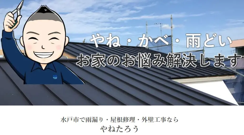 やねたろう(有限会社エムエス工業)は、茨城県水戸市を拠点とし、笠間市・那珂市・城里町などを中心に、地域密着で屋根・板金専門の施工を行う地元業者です。全国建築板金競技大会優勝や1級板金技能士在籍といった高い技術力を背景に、先代の建設マスター称号も継承。現地調査では屋根状態を「即対応」「時期対応」等に分
