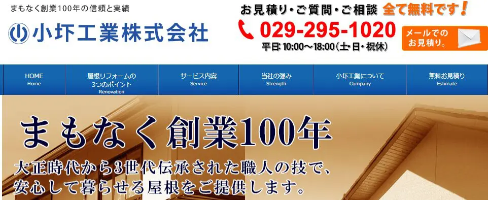 小圷工業株式会社は創業100年以上の歴史を持ち、那珂市戸崎を拠点に茨城県全域で屋根工事・板金・防水・雨樋修理および外壁リフォームを完全自社施工で提供する地域密着の専門業者です。瓦から金属屋根のカバー工法、雨漏り修理、耐震棟・棟板金工事、漆喰・谷板金補修など幅広い工事に有資格職人が丁寧に対応します。無