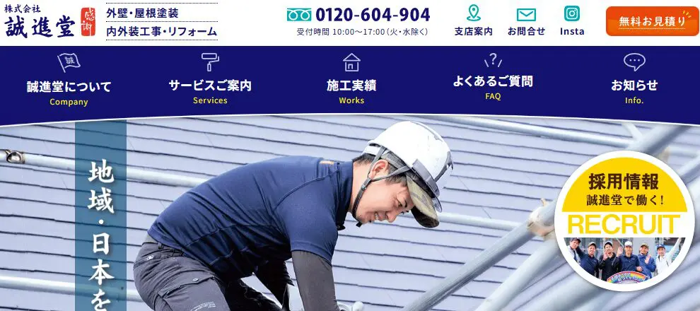 株式会社誠進堂は昭和35年創業の地域密着型リフォーム会社。屋根・外壁塗装、増改築、内装工事など幅広く対応し、年間1000件以上の施工実績を誇ります。施工前後の安心サポートや明瞭価格、10年の工事保証(外壁塗装の場合)などアフターケアも充実。さらには、LINEで進捗報告を行うなどコミュニケーション面に