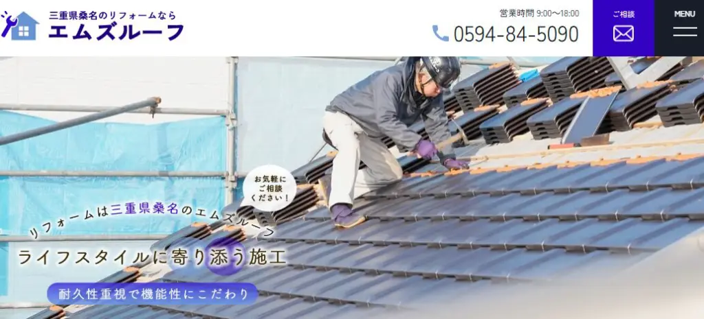 エムズルーフは、桑名市に拠点を構え、屋根工事・雨漏り修理・外壁塗装・太陽光設置など住宅リフォーム全般を自社職人による一貫施工で提供する地域密着型専門店です。累計50000件以上の実績を誇り、ドローンや散水検査などを用いた精密診断が特徴。中間マージンを省いたリーズナブルな価格設定ながら、高品質・安心保