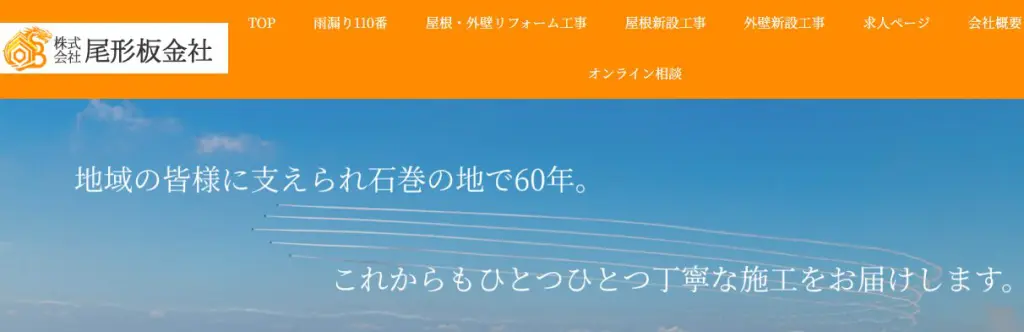 株式会社尾形板金社は創業から60年以上、石巻市中里を拠点に金属屋根、板金加工、雨樋、外壁などの施工を専門とする老舗板金工務店です。屋根の葺き替え・カバー工法・部分補修はもちろん、雨漏り修繕・防水・外壁リフォームまで幅広く対応。自社施工に加え、宮城県板金工業組合加入により10年・2000万円保証を導入
