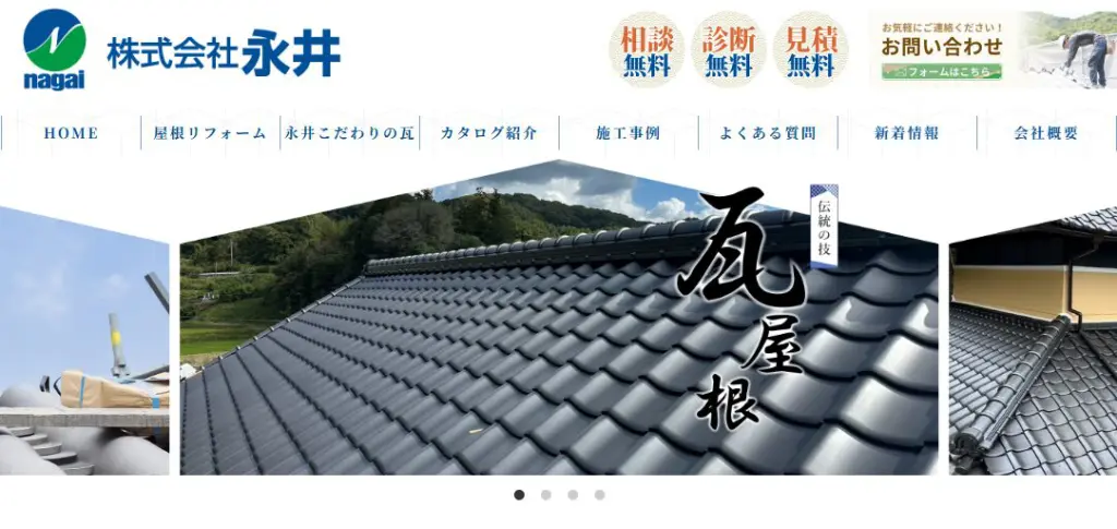 株式会社永井は岡山市北区を拠点に、瓦屋根の葺き替え、新築屋根工事、雨漏り修繕など全般を手がける屋根工事専門企業です。経験25年以上の職人が在籍し、自社施工体制による品質の高い仕上がりが強みです。小規模な補修から全面葺き替えまで幅広く対応しており、地域に根ざした丁寧な対応が信頼を集めています。お客様の