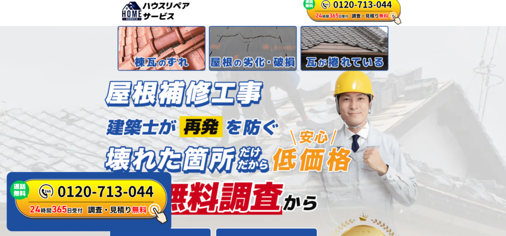 ハウスリペアサービスは、屋根の破損や経年劣化による部分修理から屋根全体の工事まで、幅広い屋根修理サービスを提供しています。年間30000件以上の対応実績を持ち、経験豊富なスタッフが迅速かつ確実な修理を行います。調査から見積もり、施工まで自社で全て行うため、高品質な施工を低価格で提供できます。無料のア