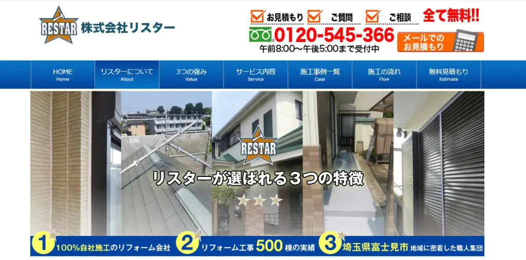 株式会社リスターは、埼玉県富士見市を拠点に、屋根工事、外壁工事、雨樋工事を専門とするリフォーム会社です。100%自社施工を行い、これまでに200棟以上のリフォーム実績を持ち、地域密着型のサービスを提供しています。主な対応エリアは富士見市、ふじみ野市を中心に、埼玉県全域にわたります。お客様の大切な住宅