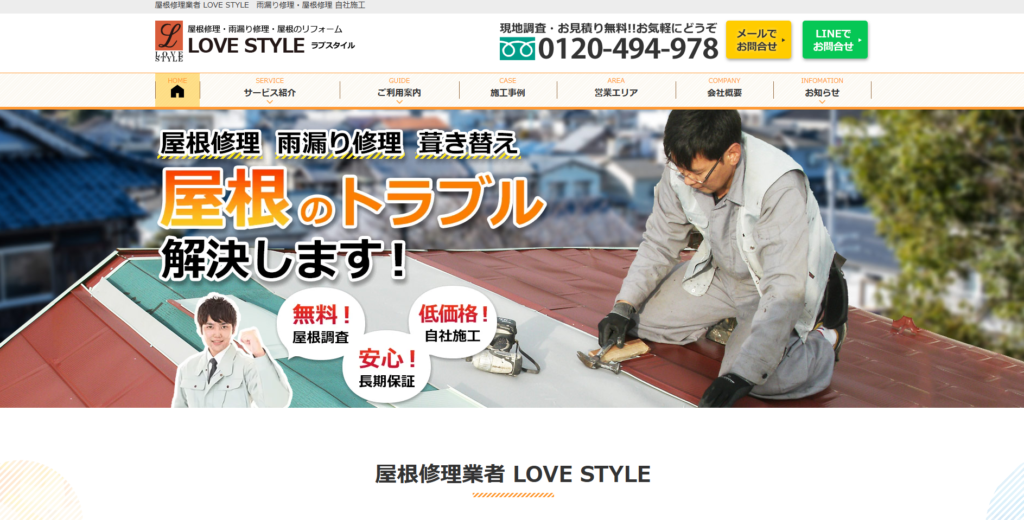 株式会社LOVESTYLEは、東京都世田谷区に拠点を構える屋根修理専門業者です。主に東京都、埼玉県、神奈川県、千葉県、茨城県を中心に、屋根の修理・雨漏り修理・屋根のリフォームなど、屋根に関する工事全般を手掛けています。熟練の職人による直接施工を行い、高品質な仕上がりと安心価格を提供しています。ドロー