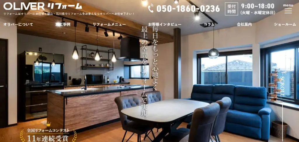 株式会社オリバーは、富山県富山市に本社を構える外装リフォーム専門店で、富山県・石川県全域に対応しています。屋根修理や外壁塗装、屋上防水などの外装工事を中心に、55000件以上の施工実績を誇ります。資格を持ったプロのスタッフが無料で屋根・外壁診断を行い、わかりやすいプランと見積書を提供しています。強引