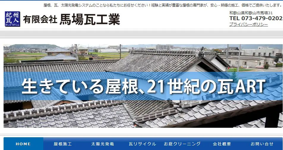 馬場瓦工業は、大正13年創業の老舗瓦工事専門企業で、和歌山市馬場を拠点に和歌山県全域で活動しています。新築瓦葺き、葺き替え、部分修繕、瓦リサイクル、太陽光発電システムの施工など幅広く対応。全瓦連加盟、瓦屋根診断士や一級かわらぶき技能士など有資格者が多数在籍し、文化財や公共建築も手がける高い技術力が特
